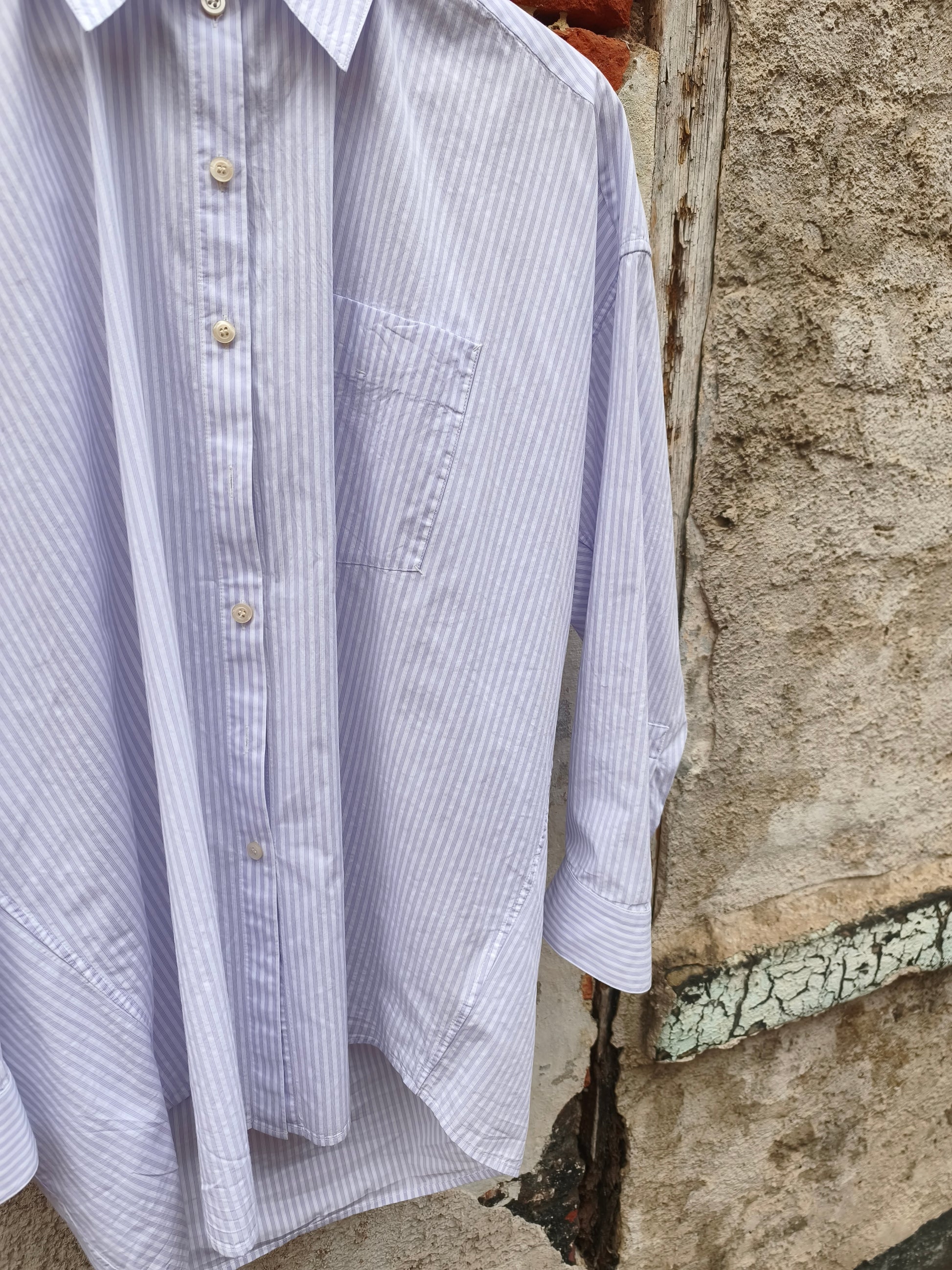 Oversized hemd met lila strepen.