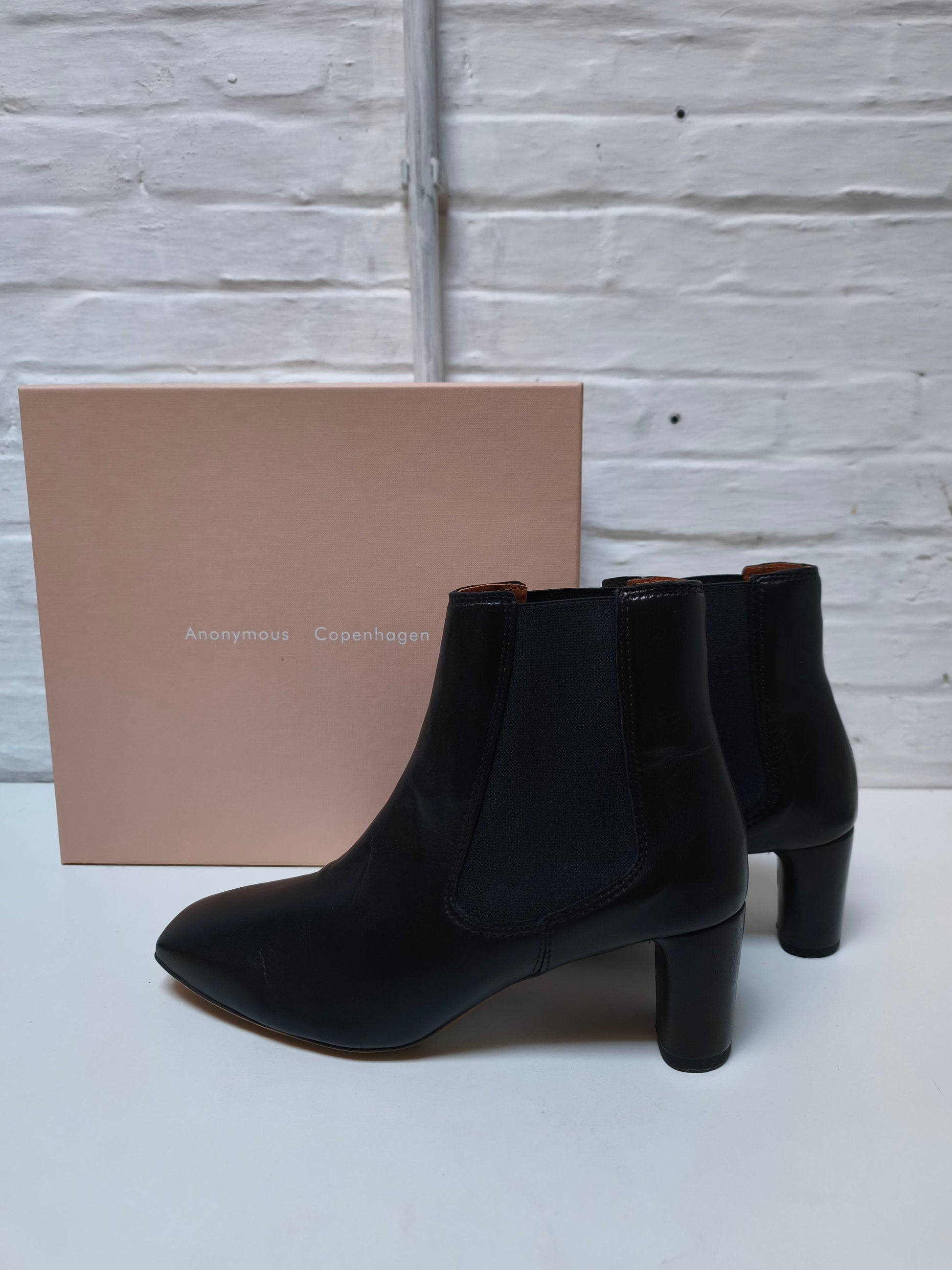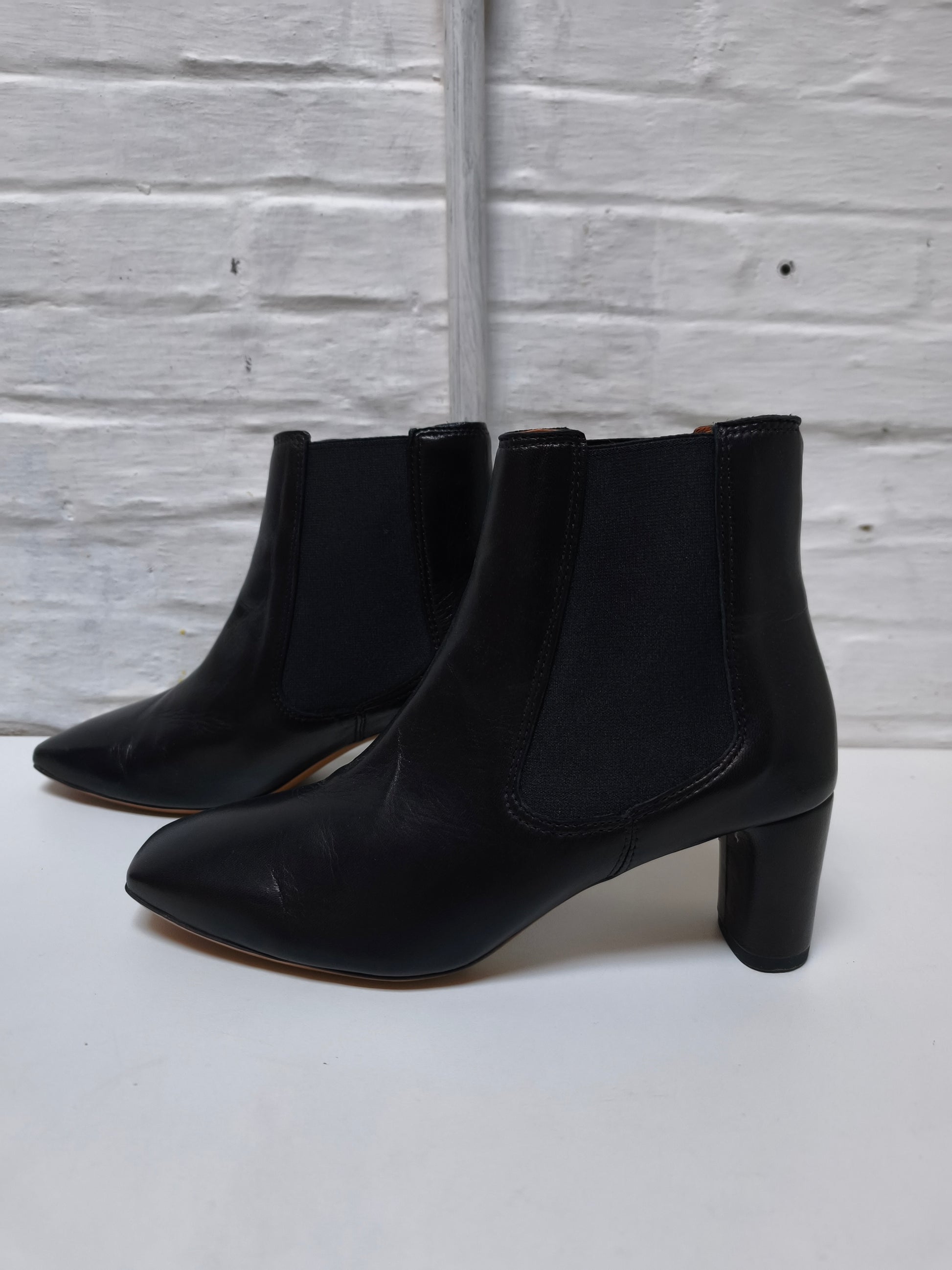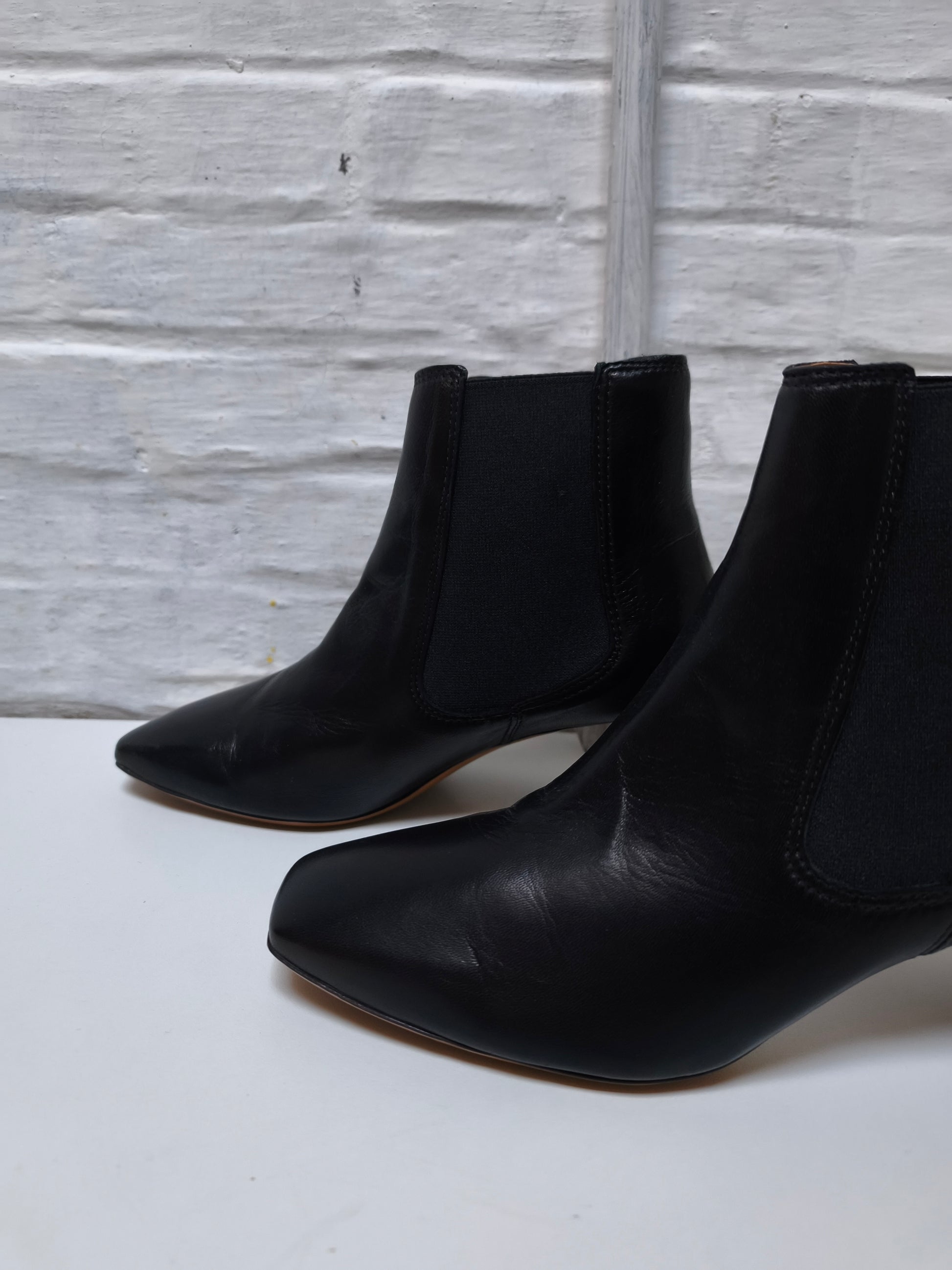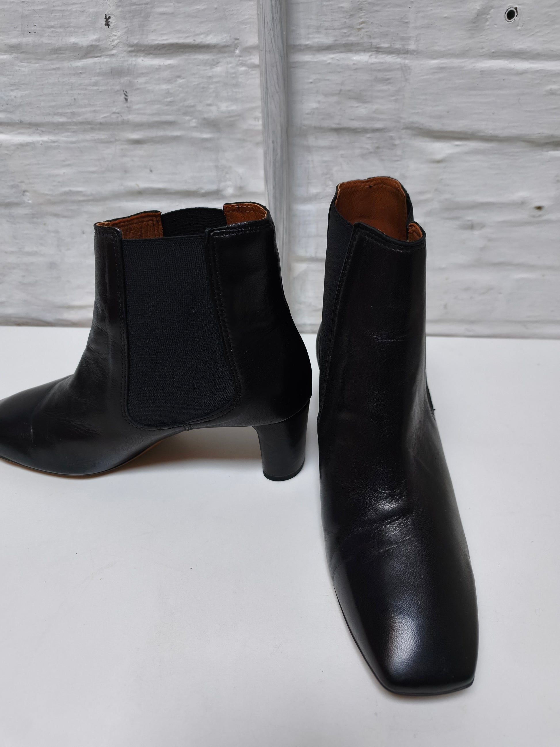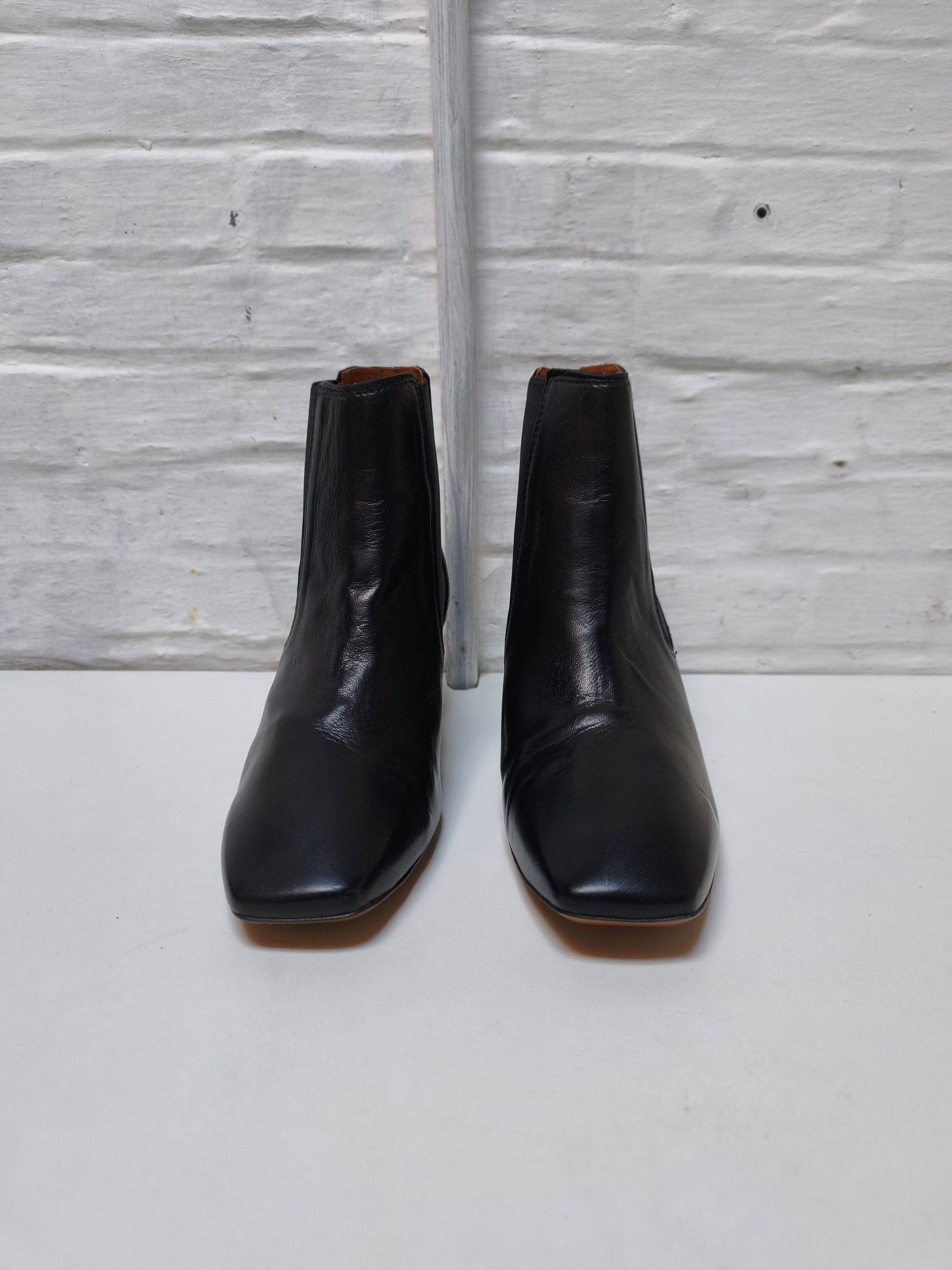 Enkellaarzen in zwart leer met elastieken aan de zijkant.