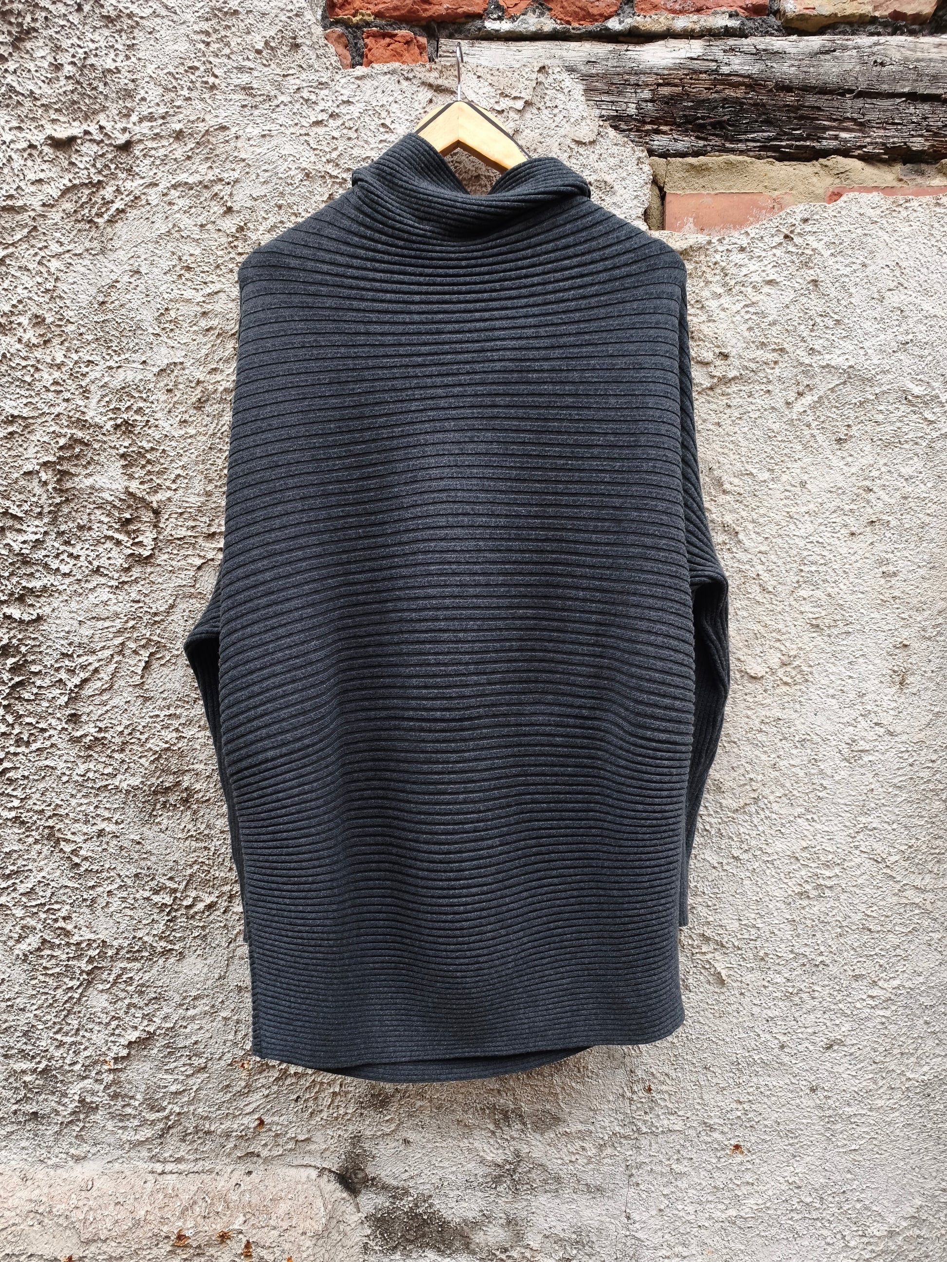 Grijze trui met drapage effect.