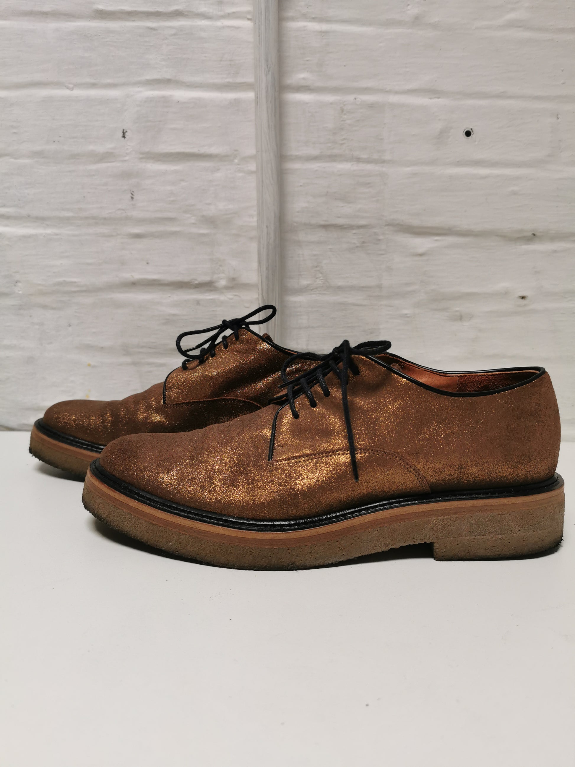 Één van onze Belgische iconen. Altijd mooi. Prachtige veterschoenen in bronskleurig leer met een stevige zool.