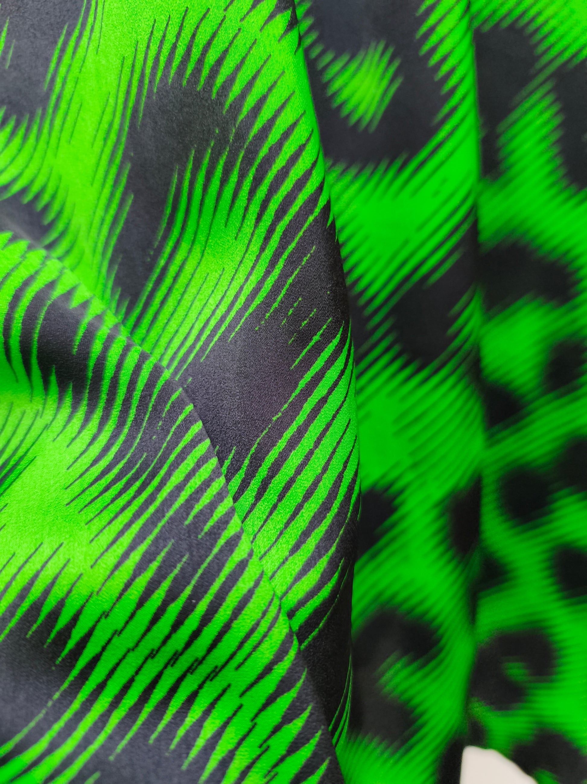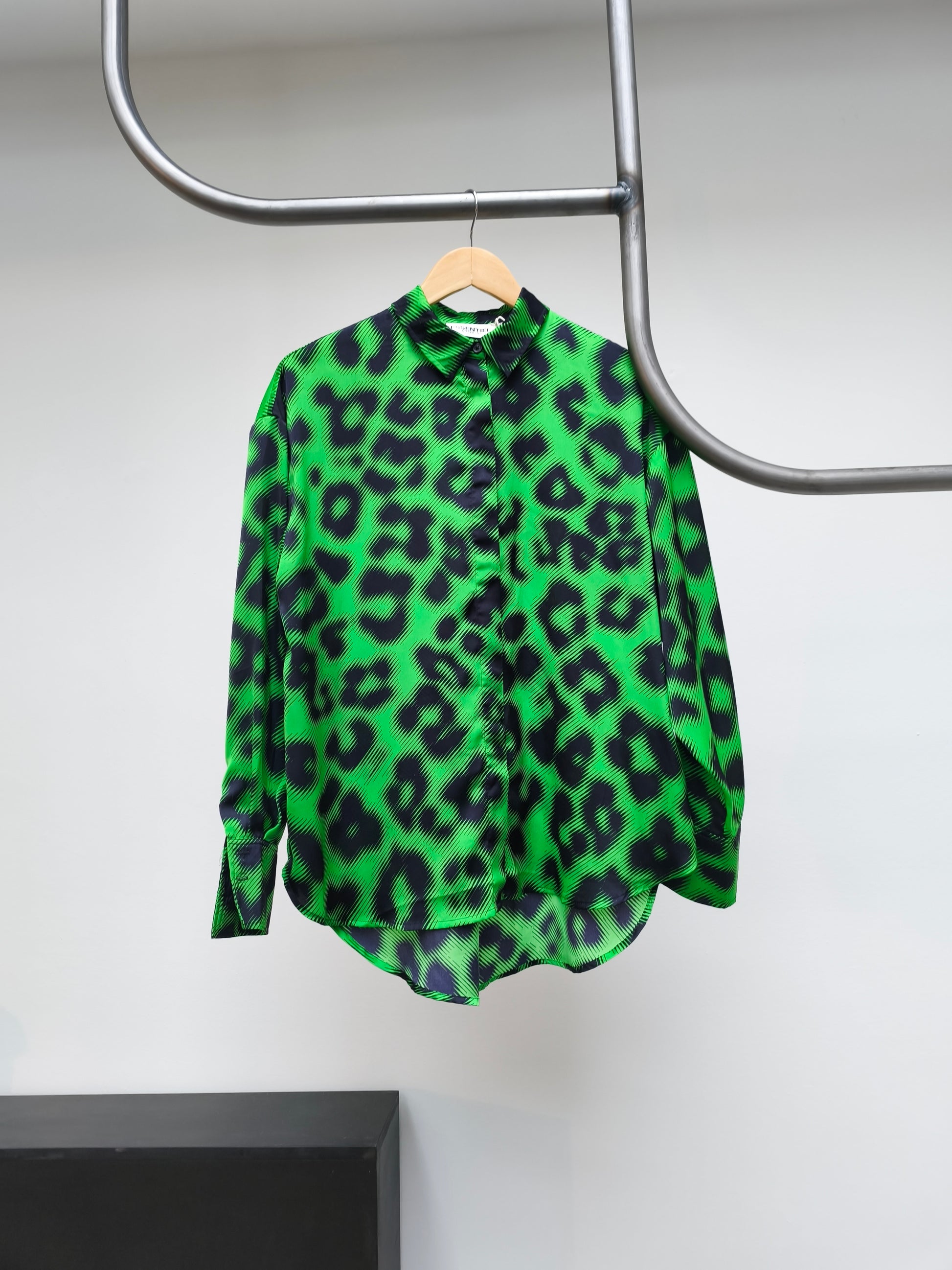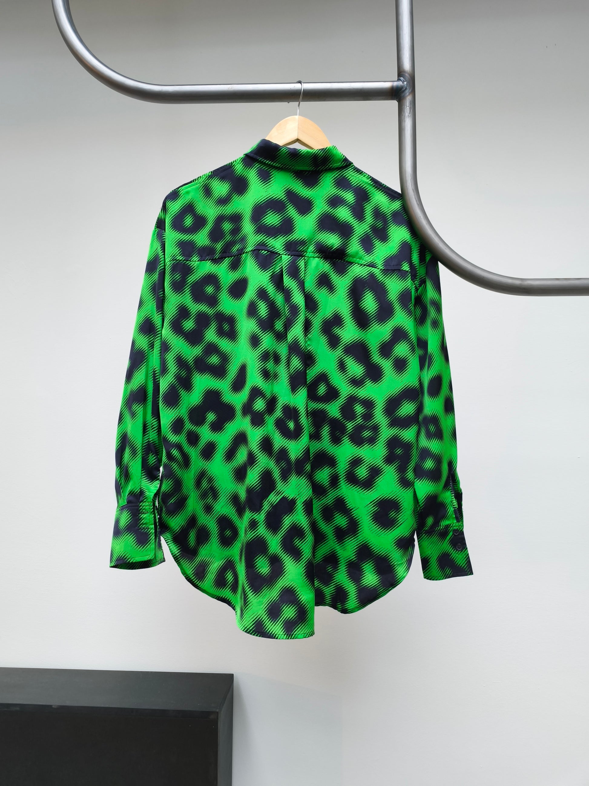 Groene luchtige blouse met zwarte vlekken.