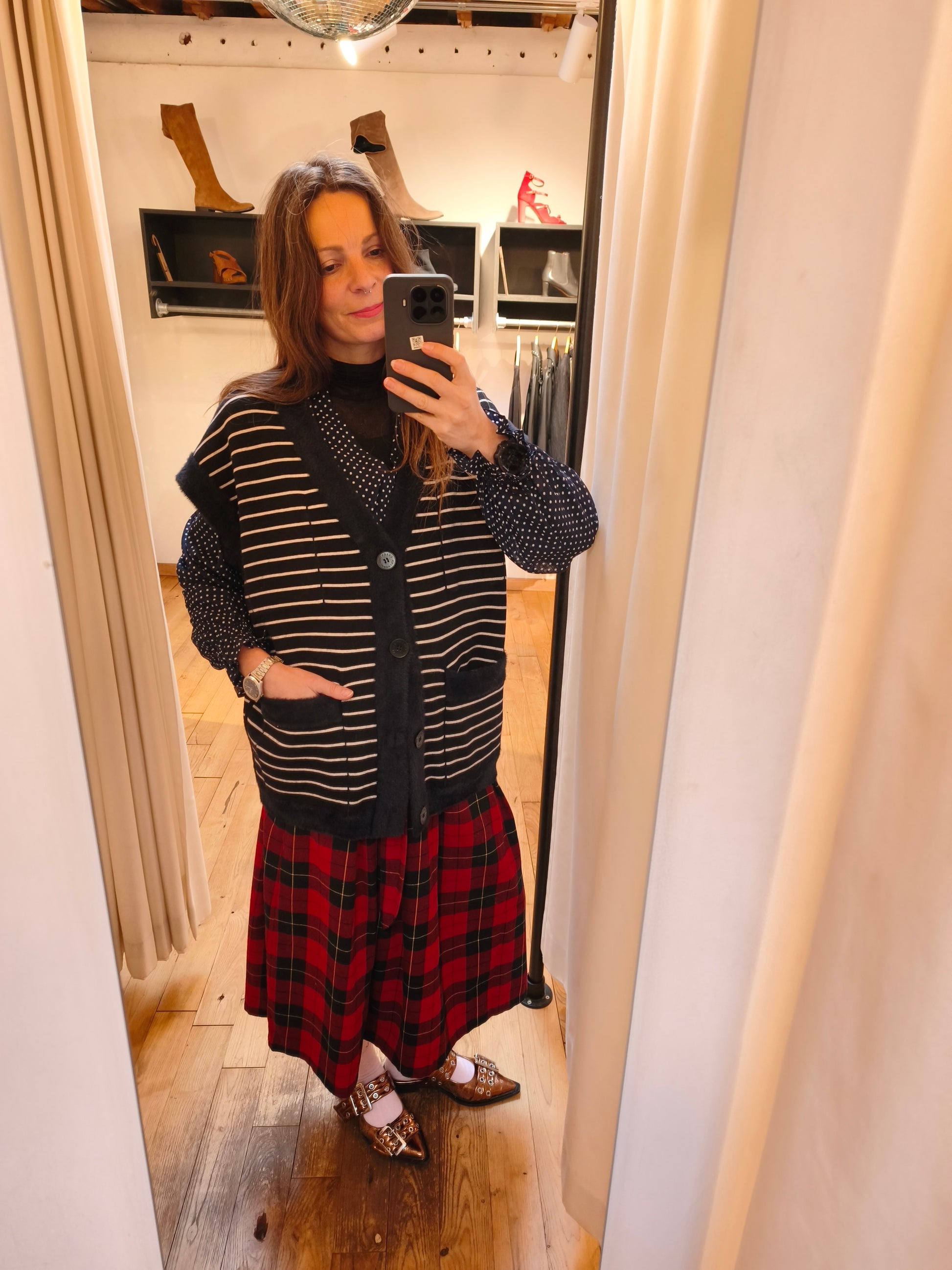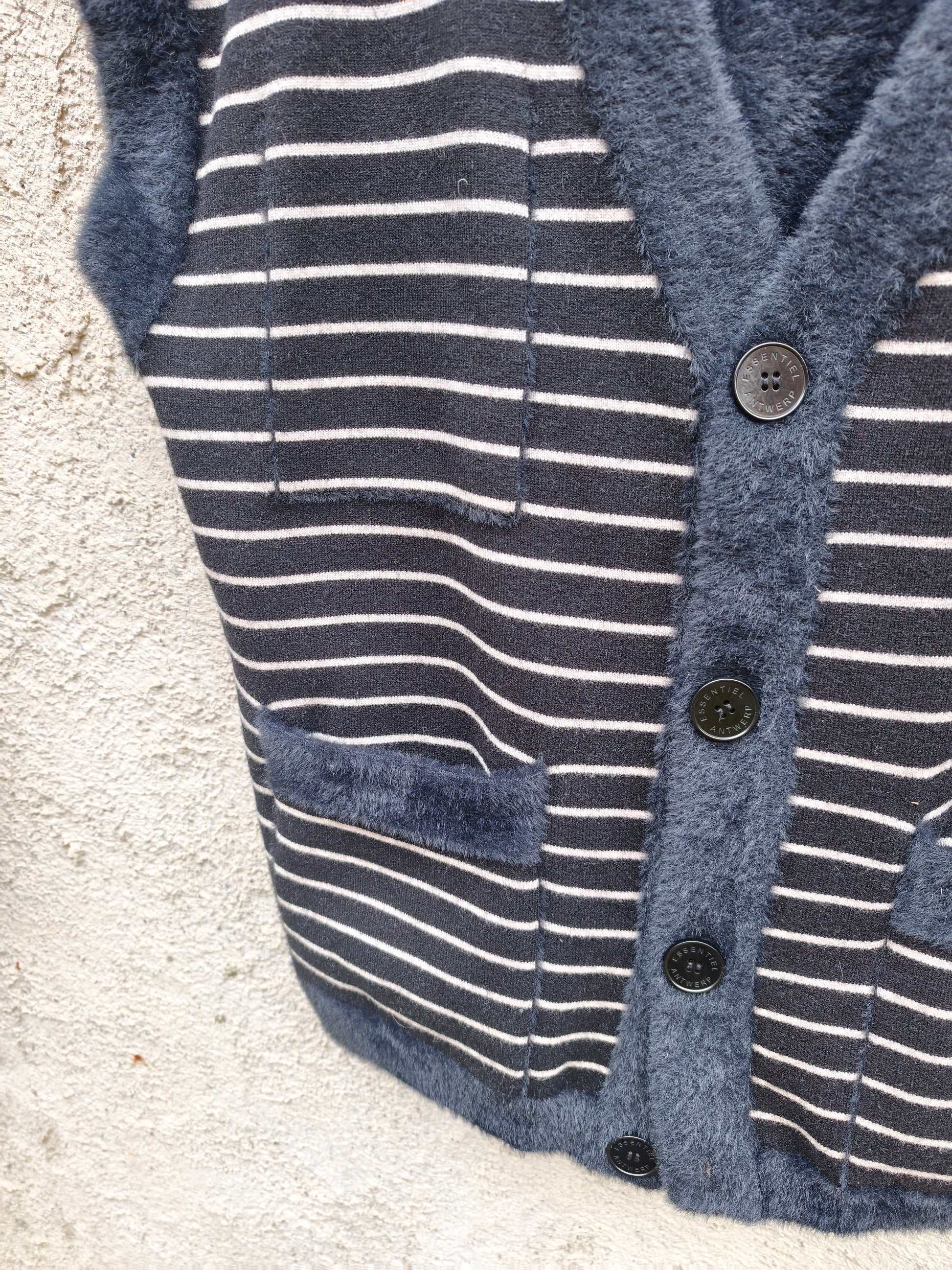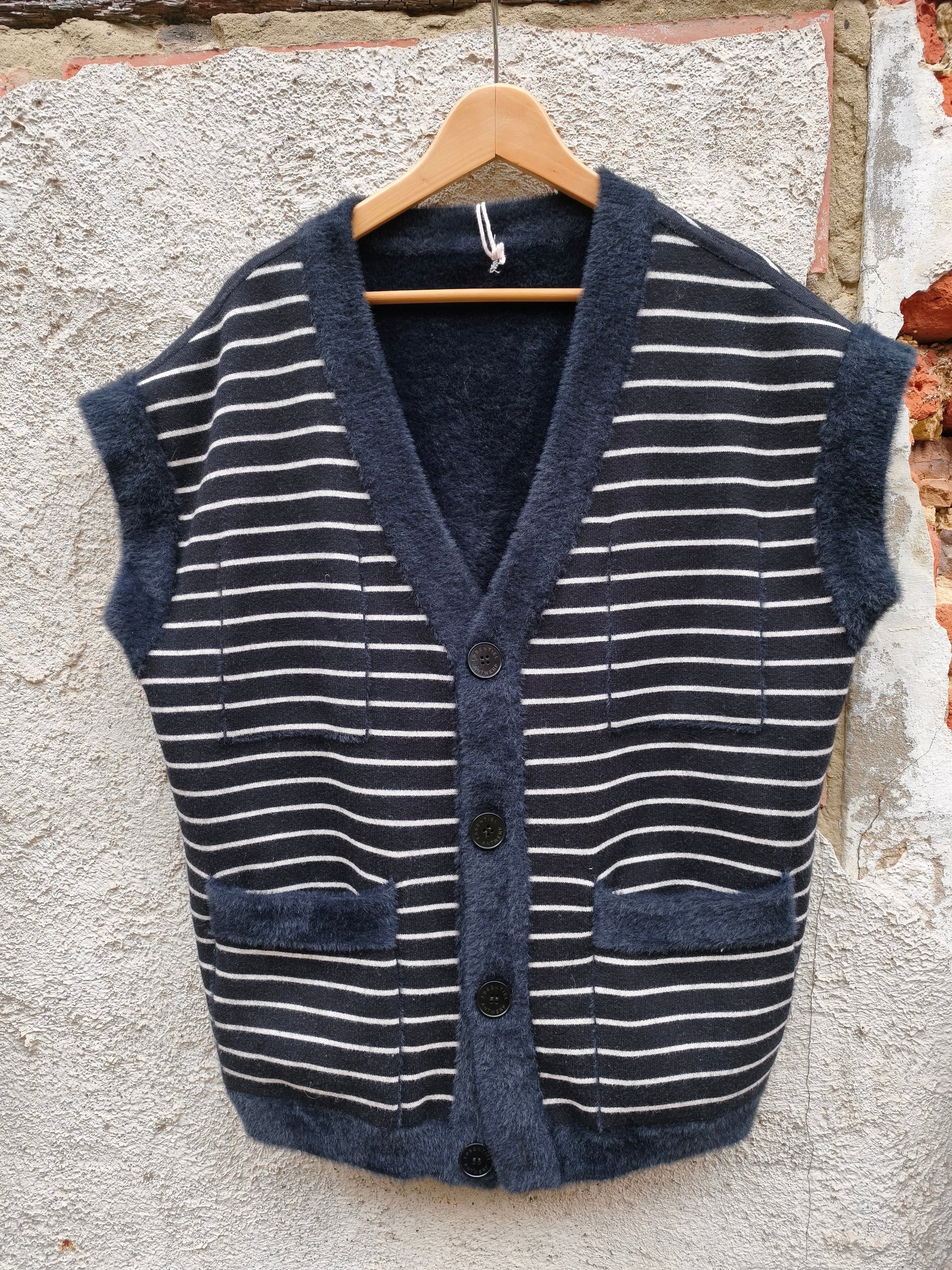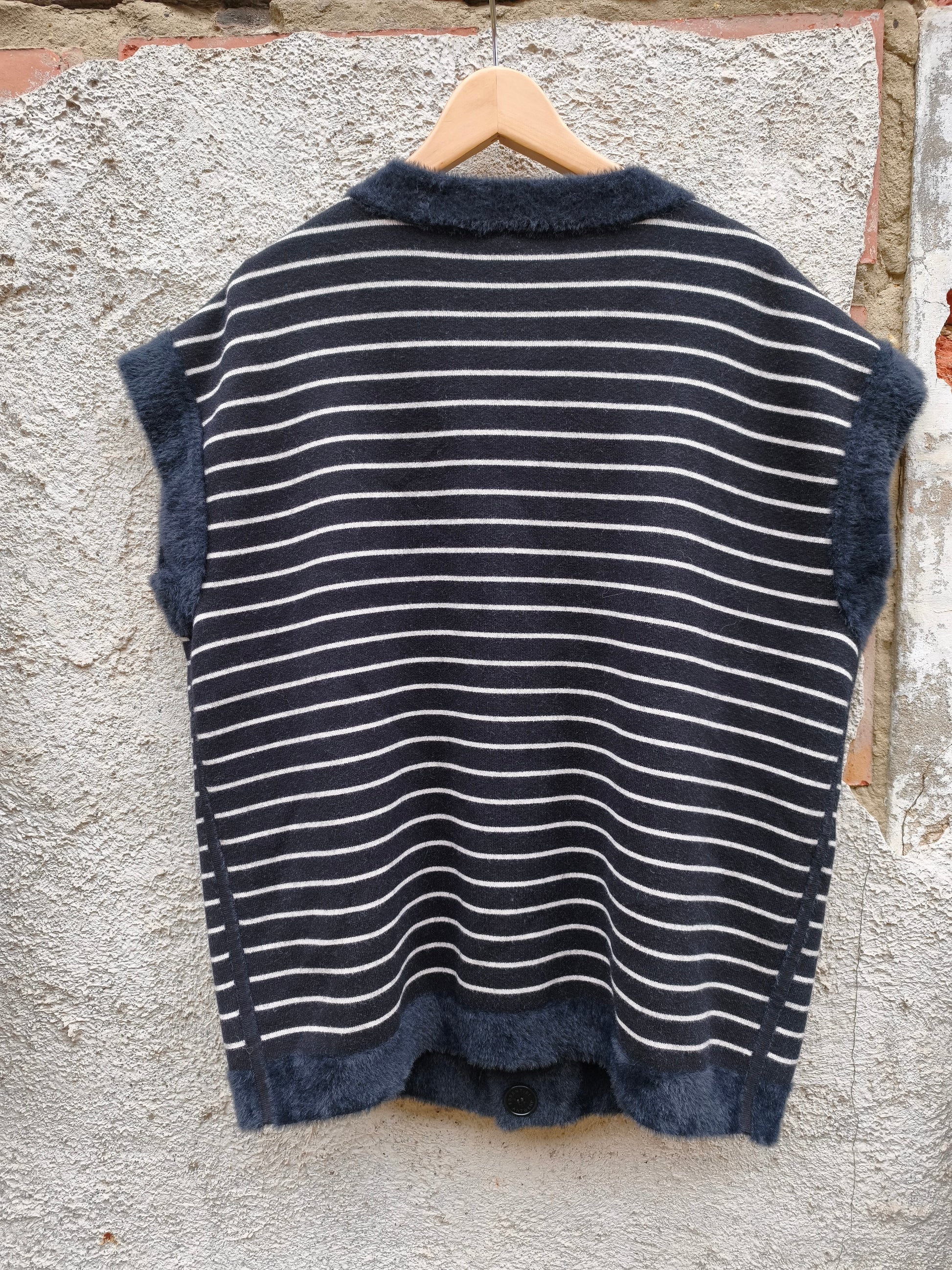 Zachte, Navy dubbelzijdige gilet met strepen.