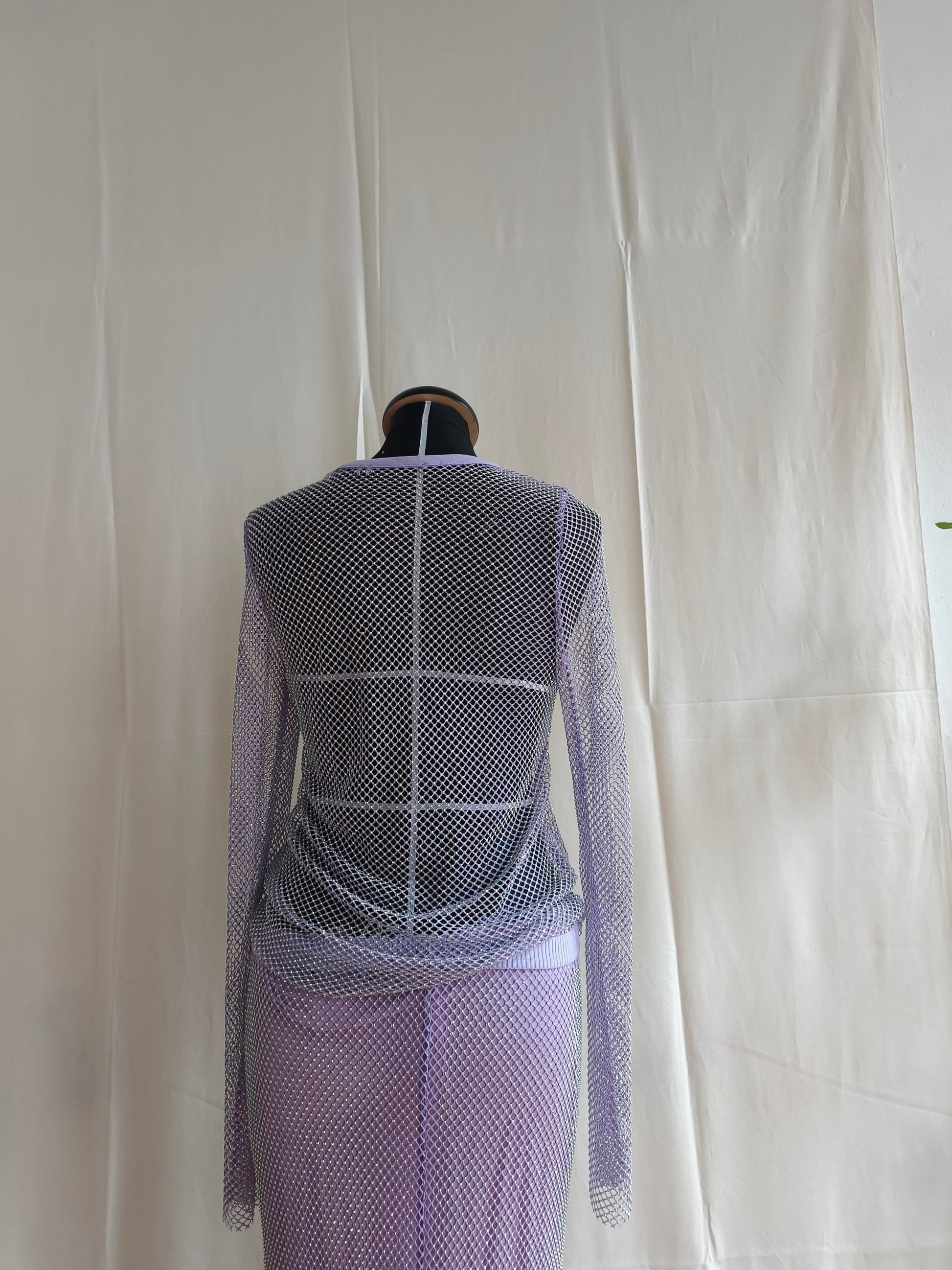 Doorschijnend, glinsterend paars topje.