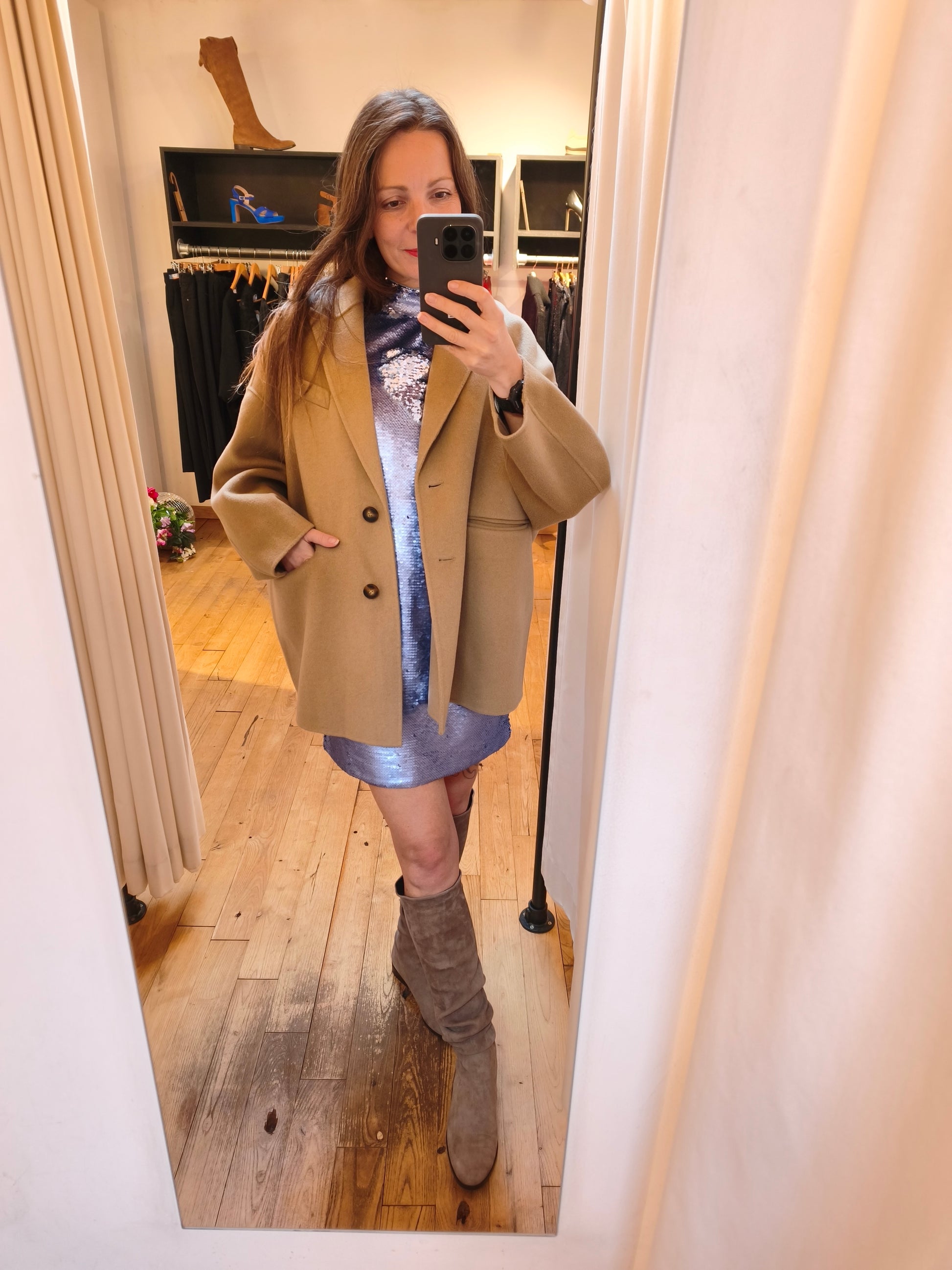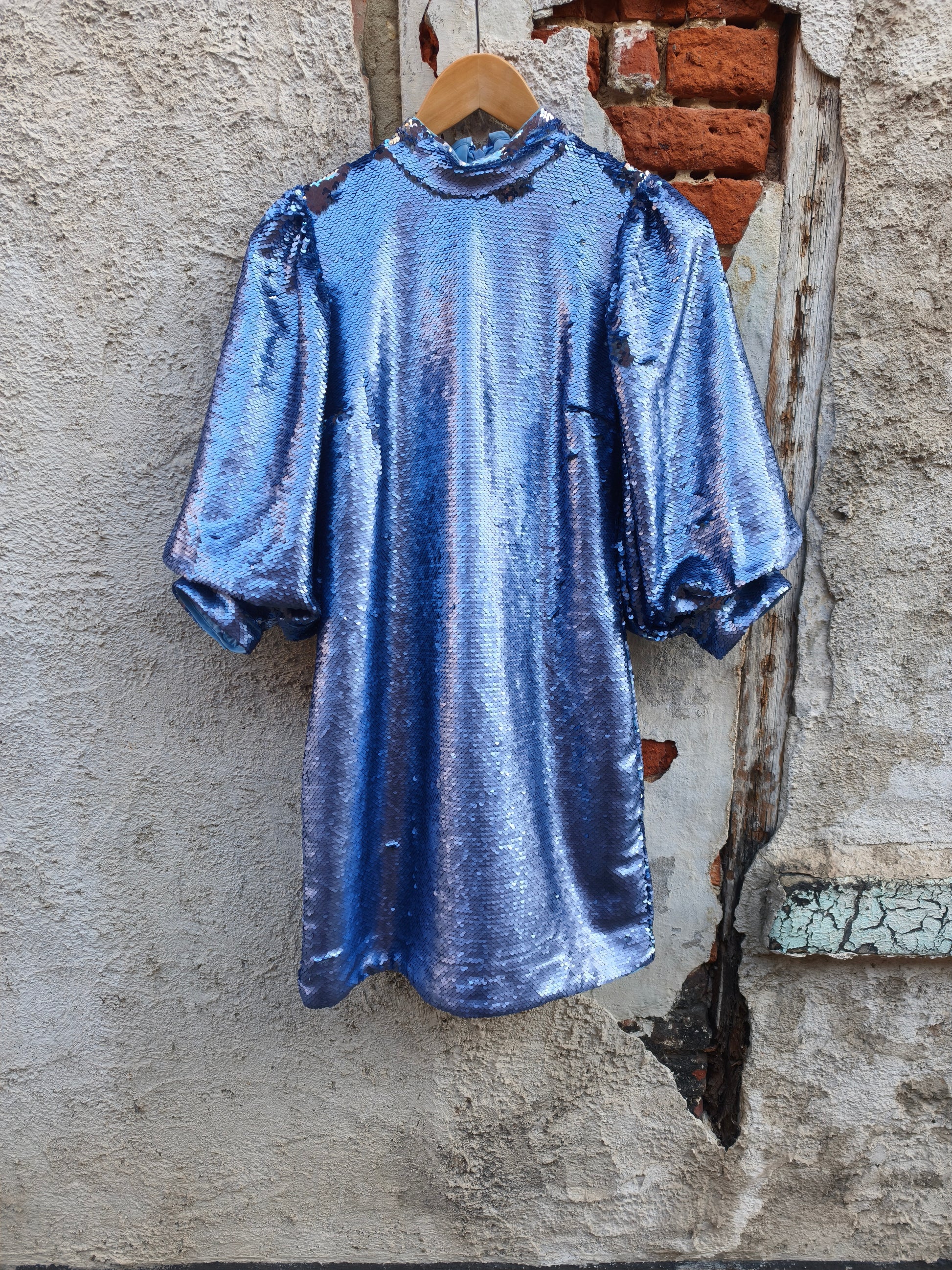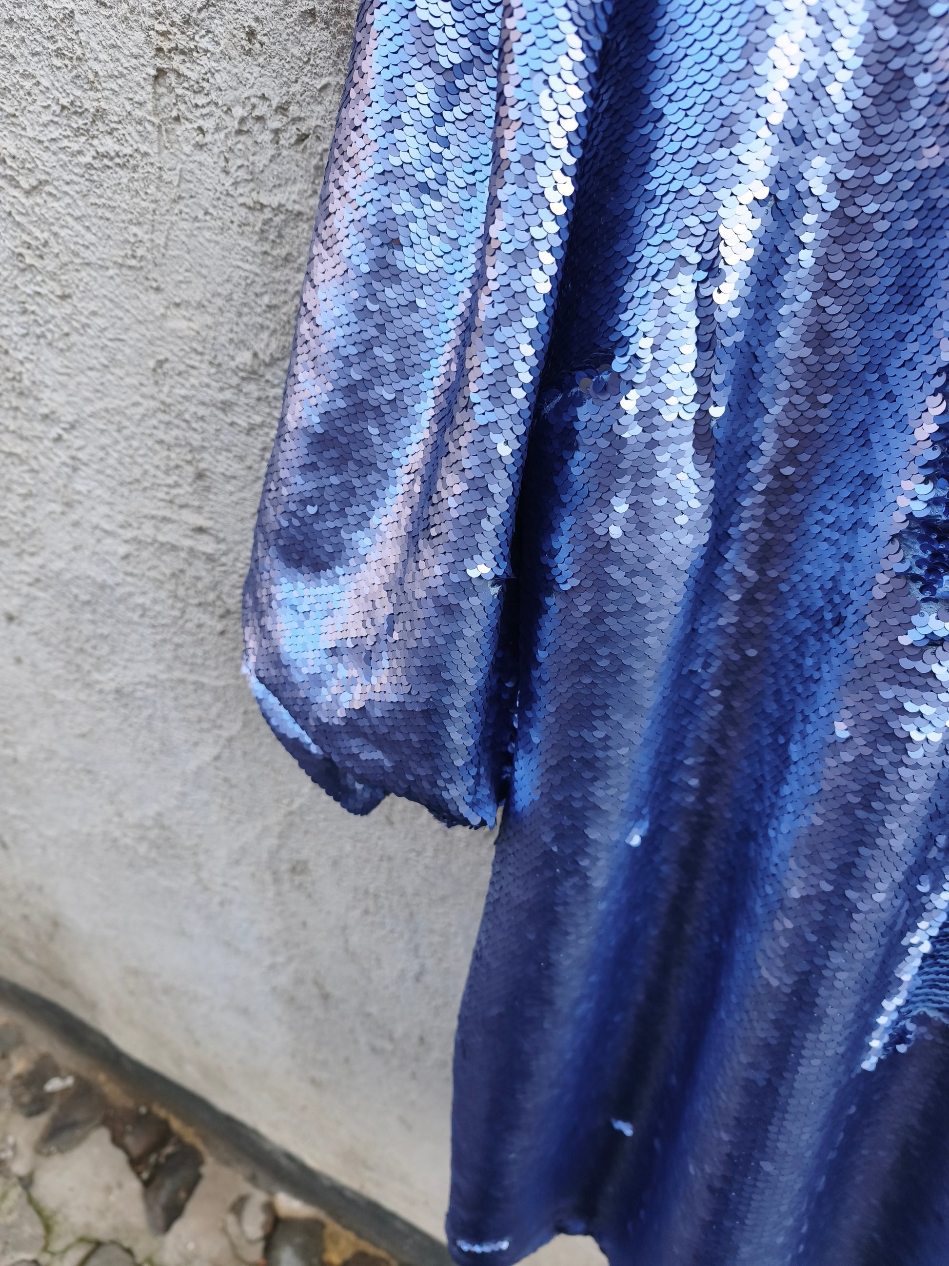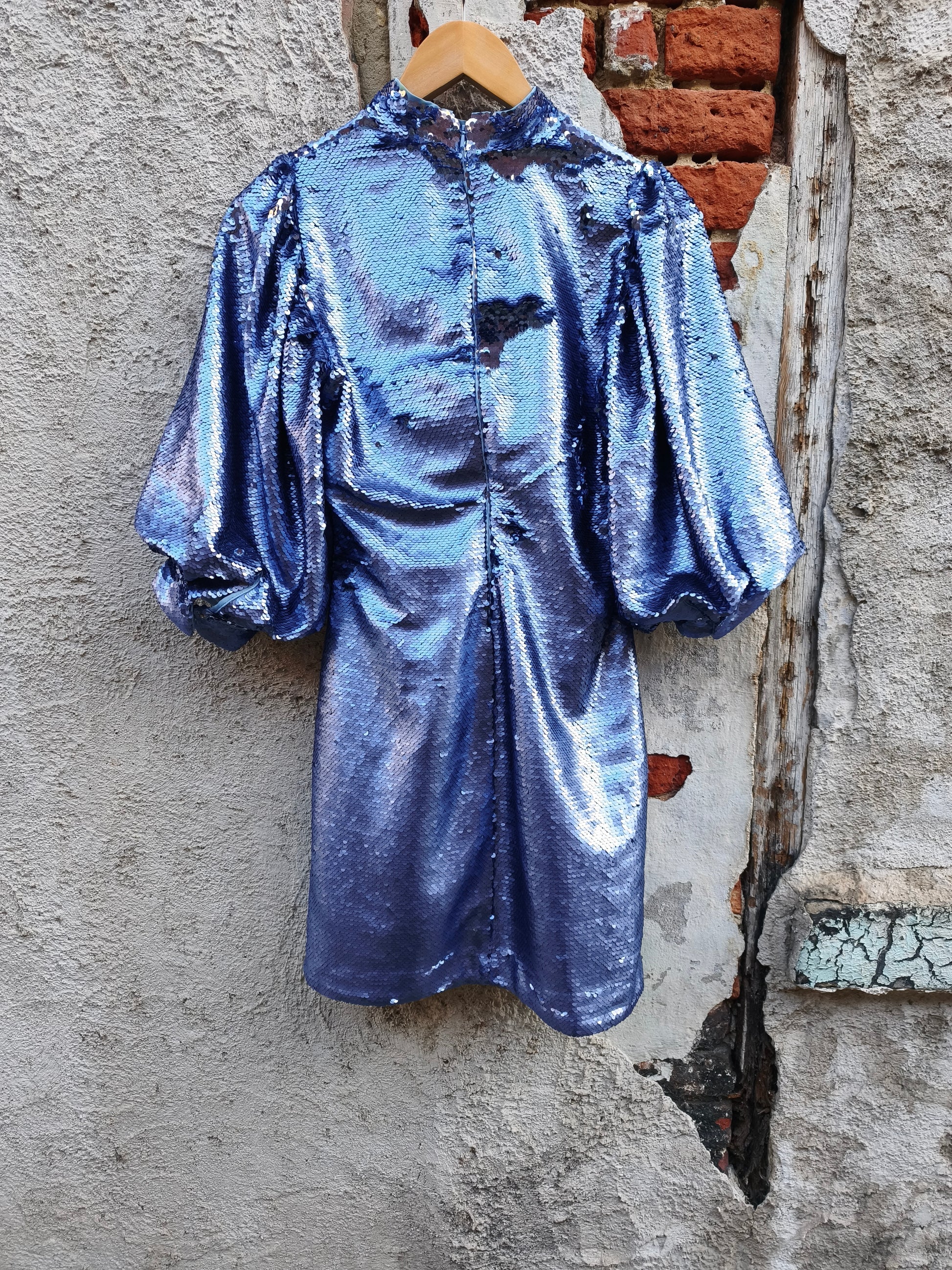 Jurk met pailletten. Volledig gevoerd. Sluit met rits op de rug.