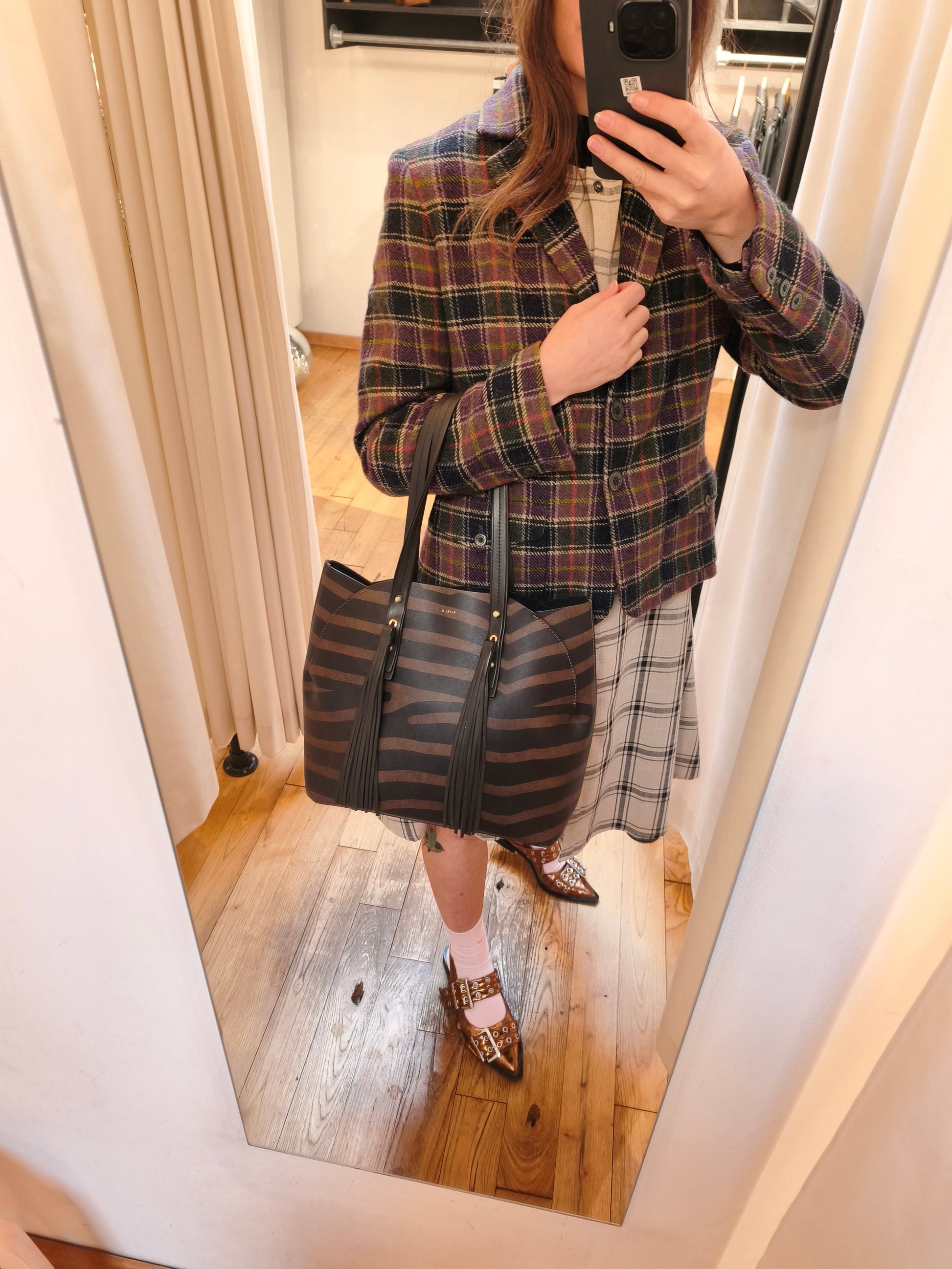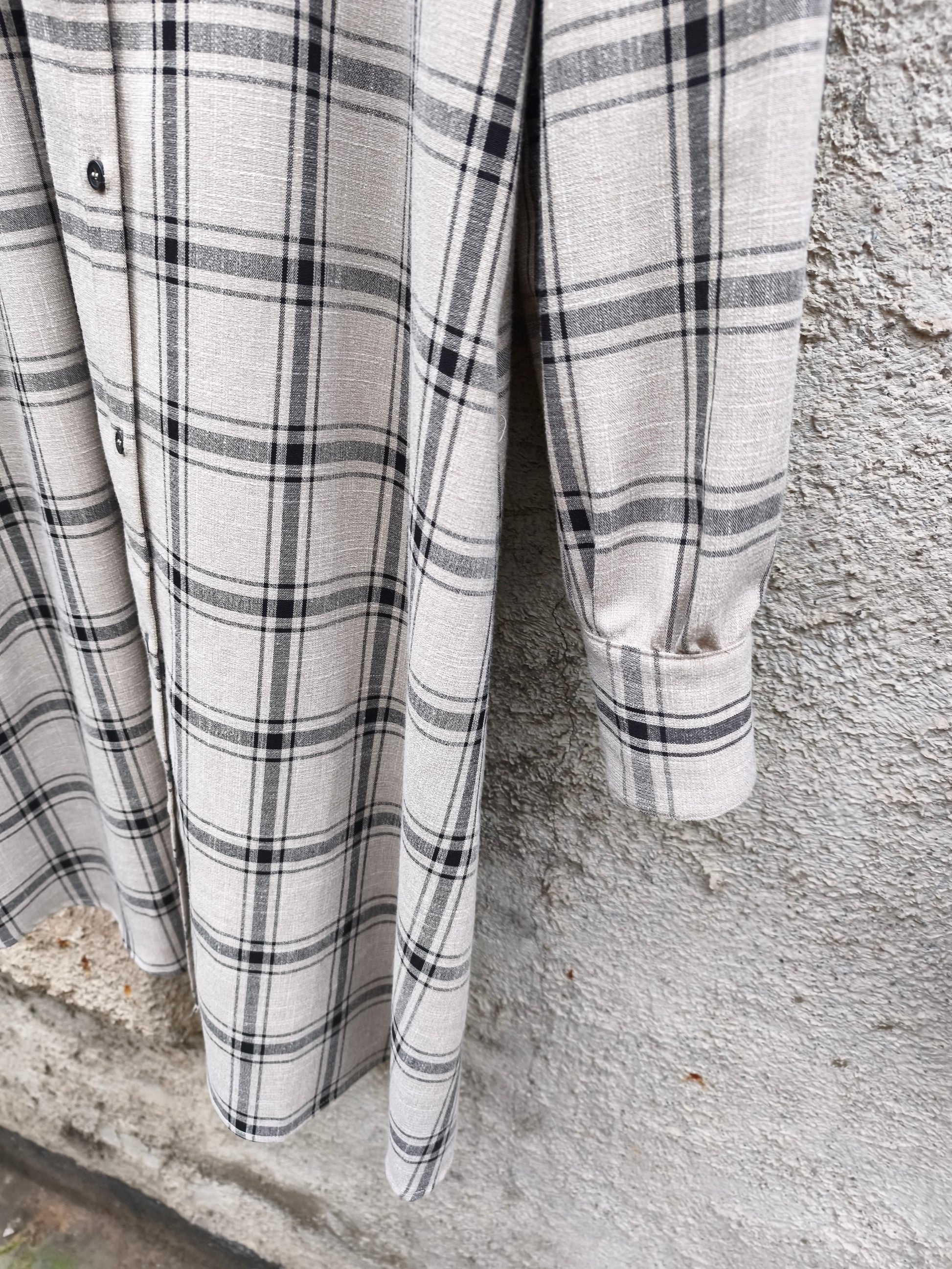 Mooie geruite tartan grijs/zwarte jurk met knopen.