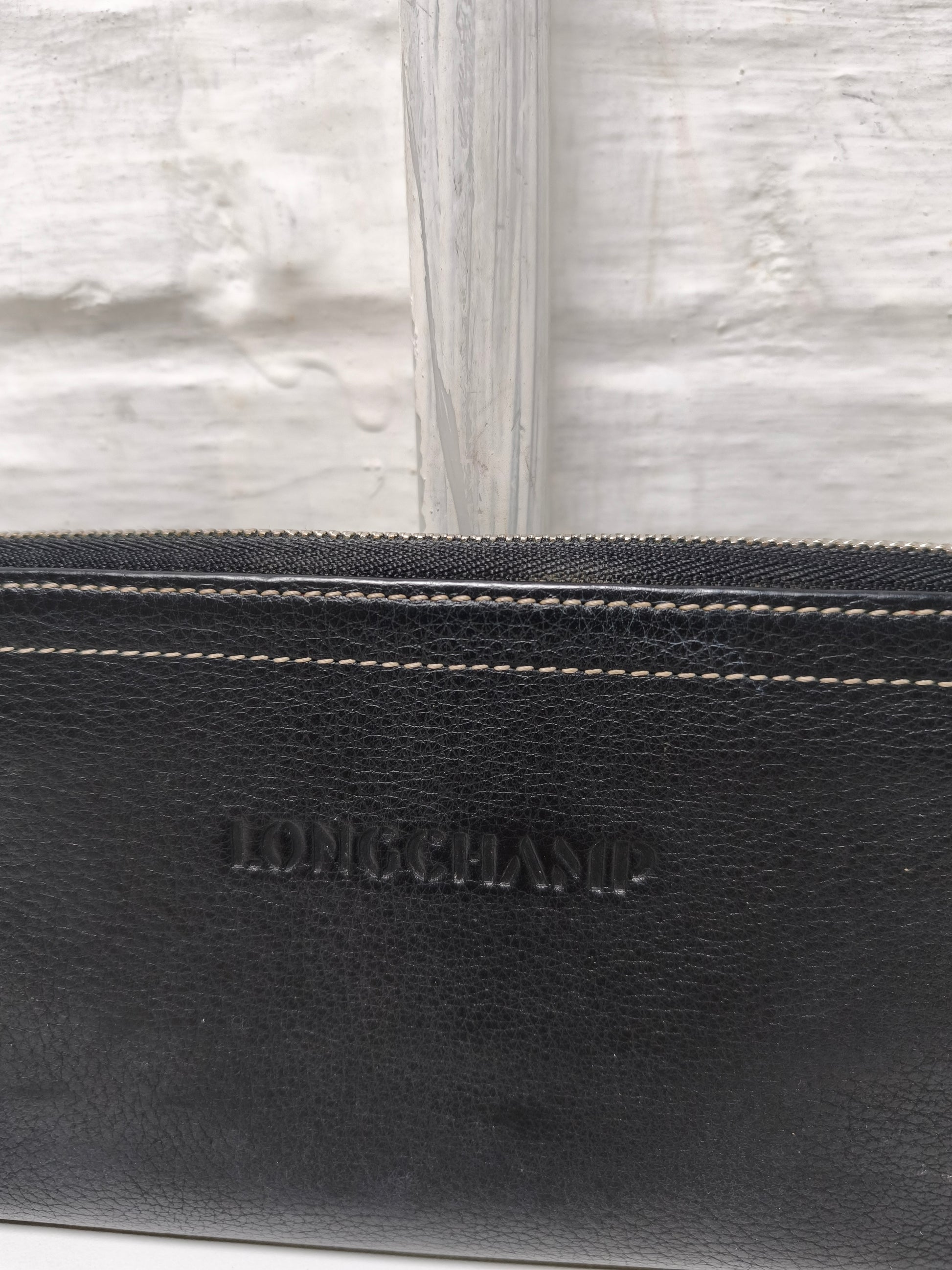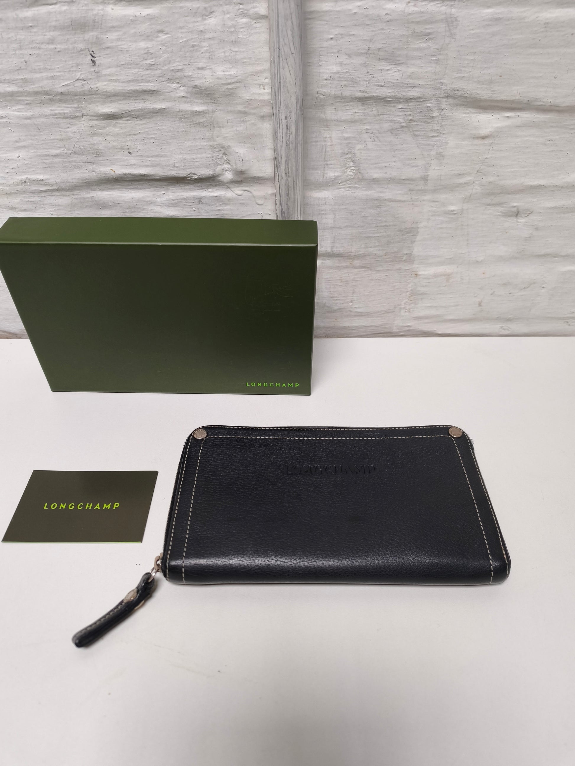 Portefeuille in zwart leder. Binnenkant rood leder.