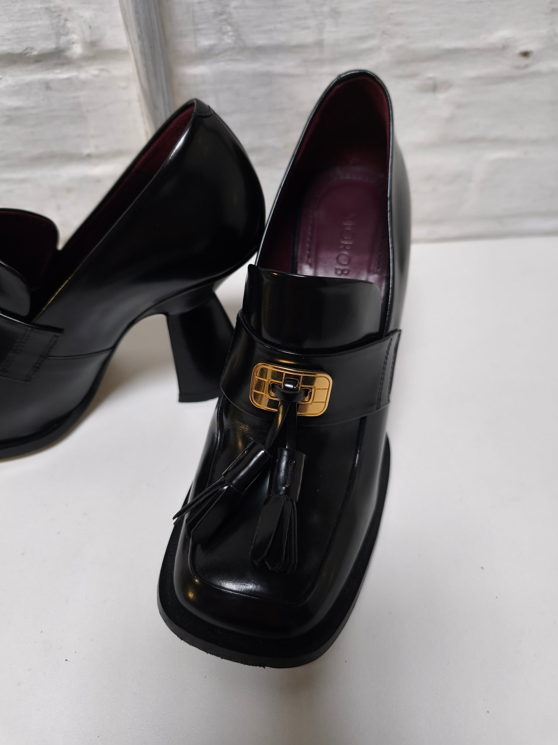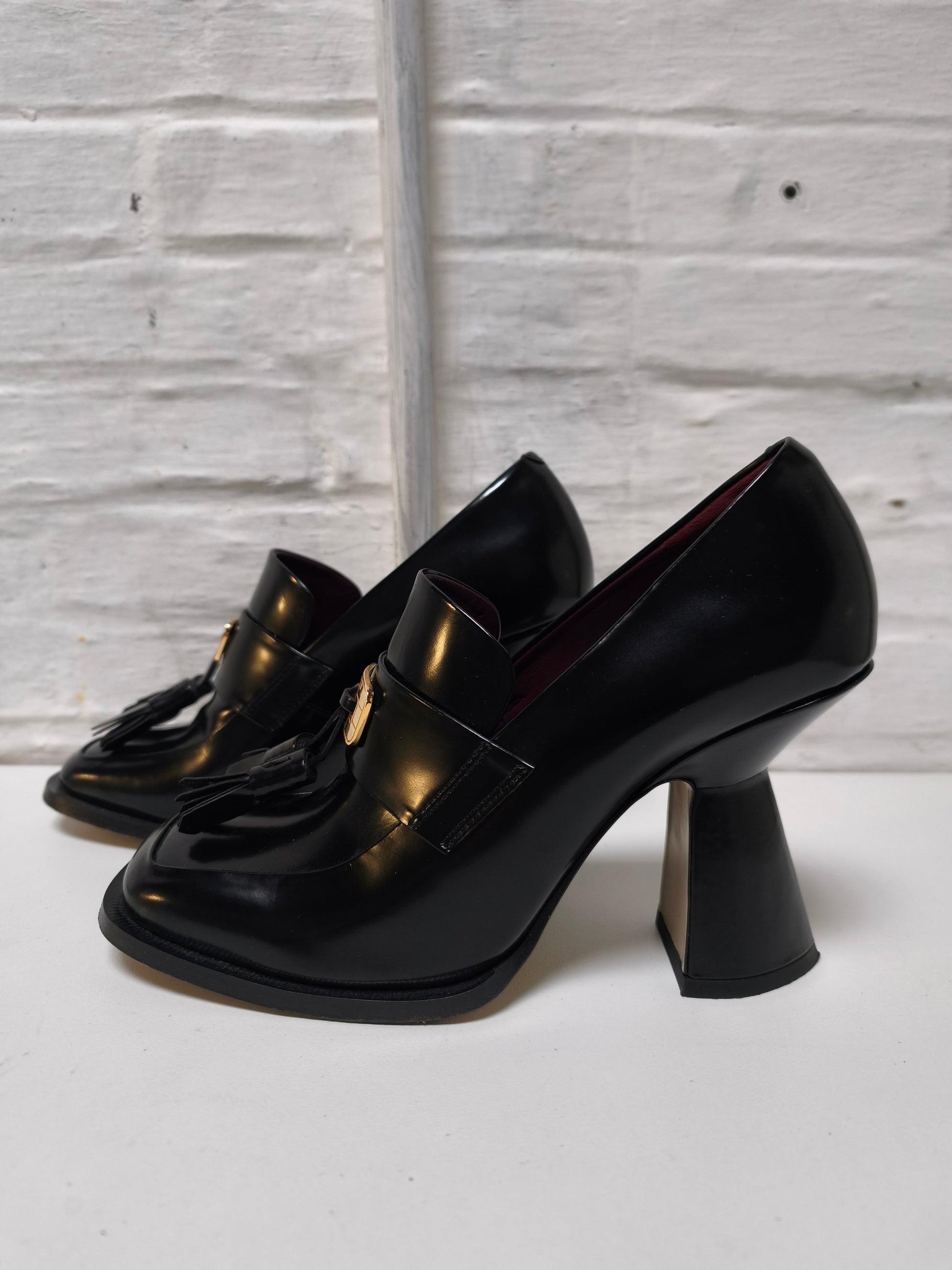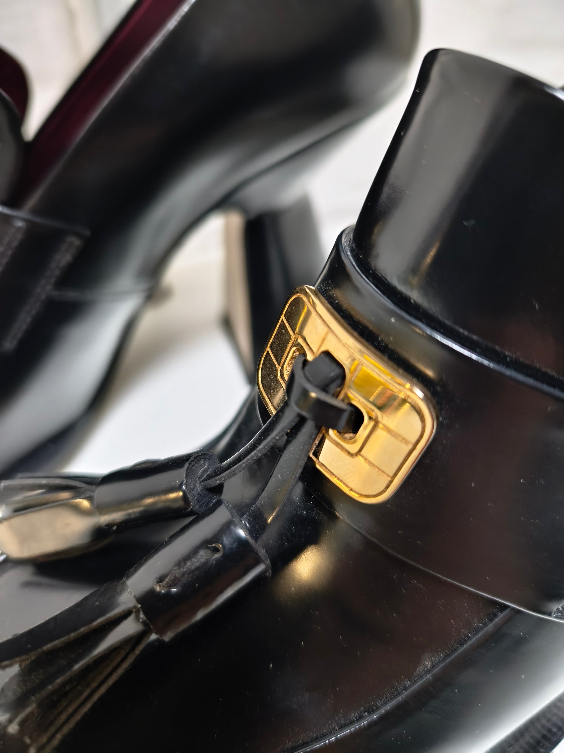 De Selin pumps in prachtig glad, zwart leer met tassels.