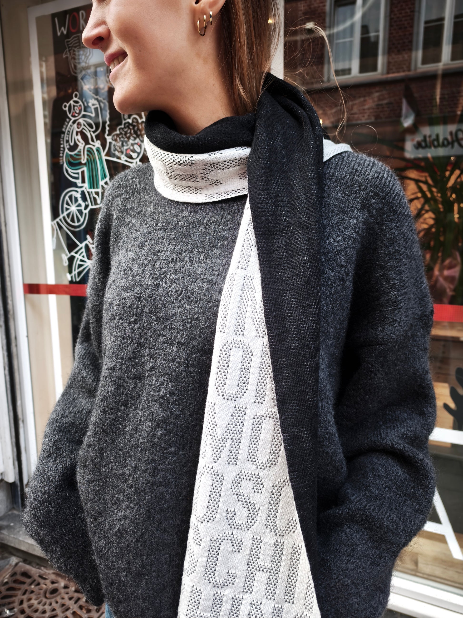 Zwart/witte sjaal in jacquard.