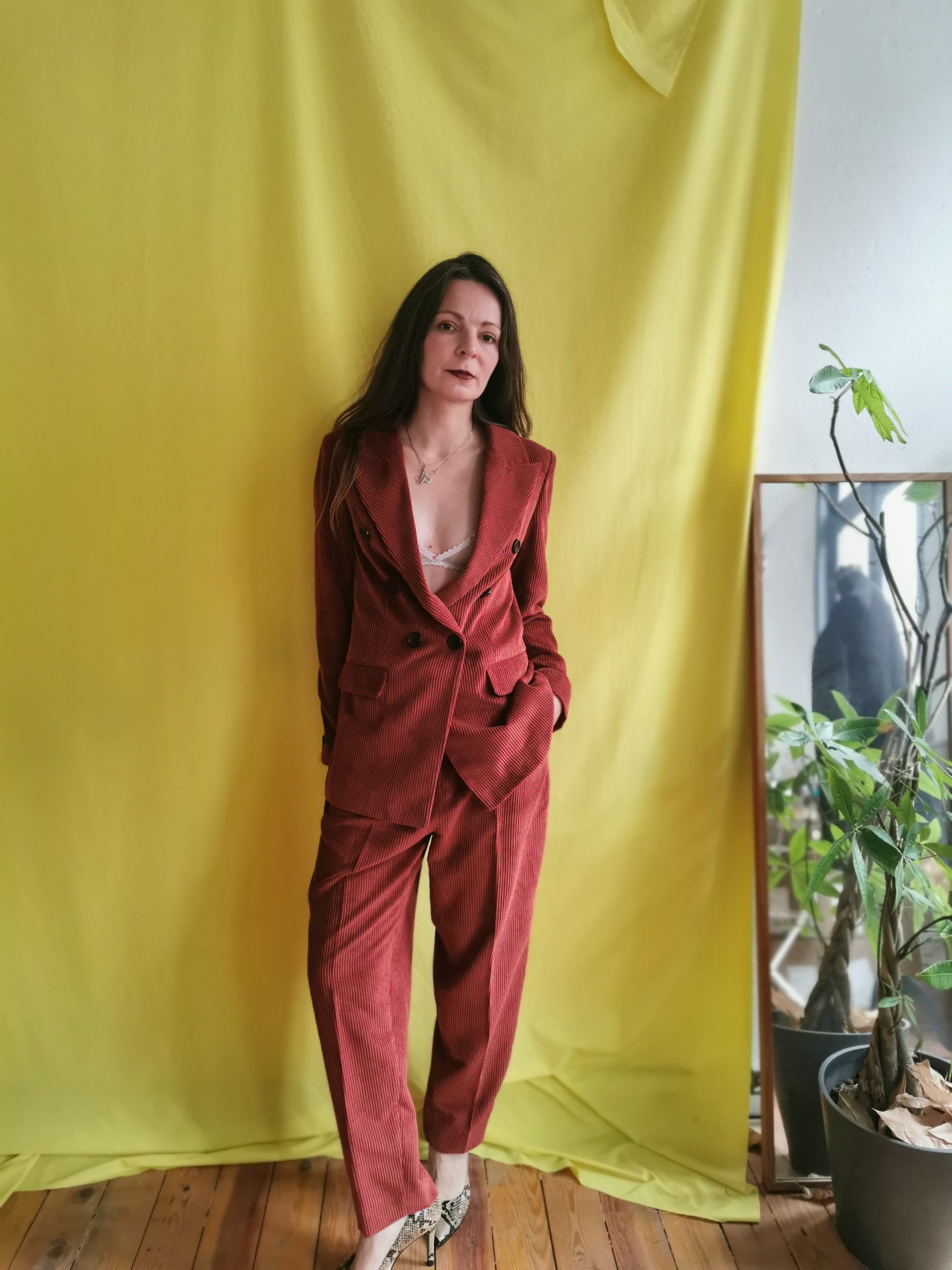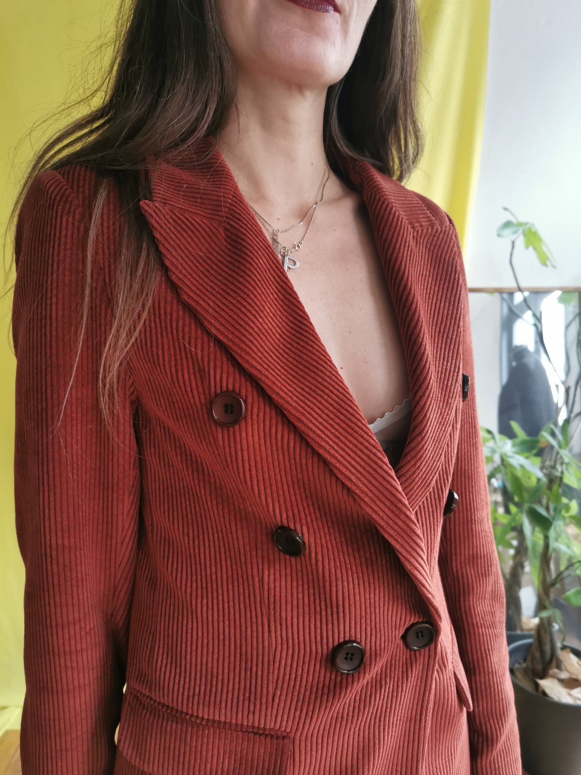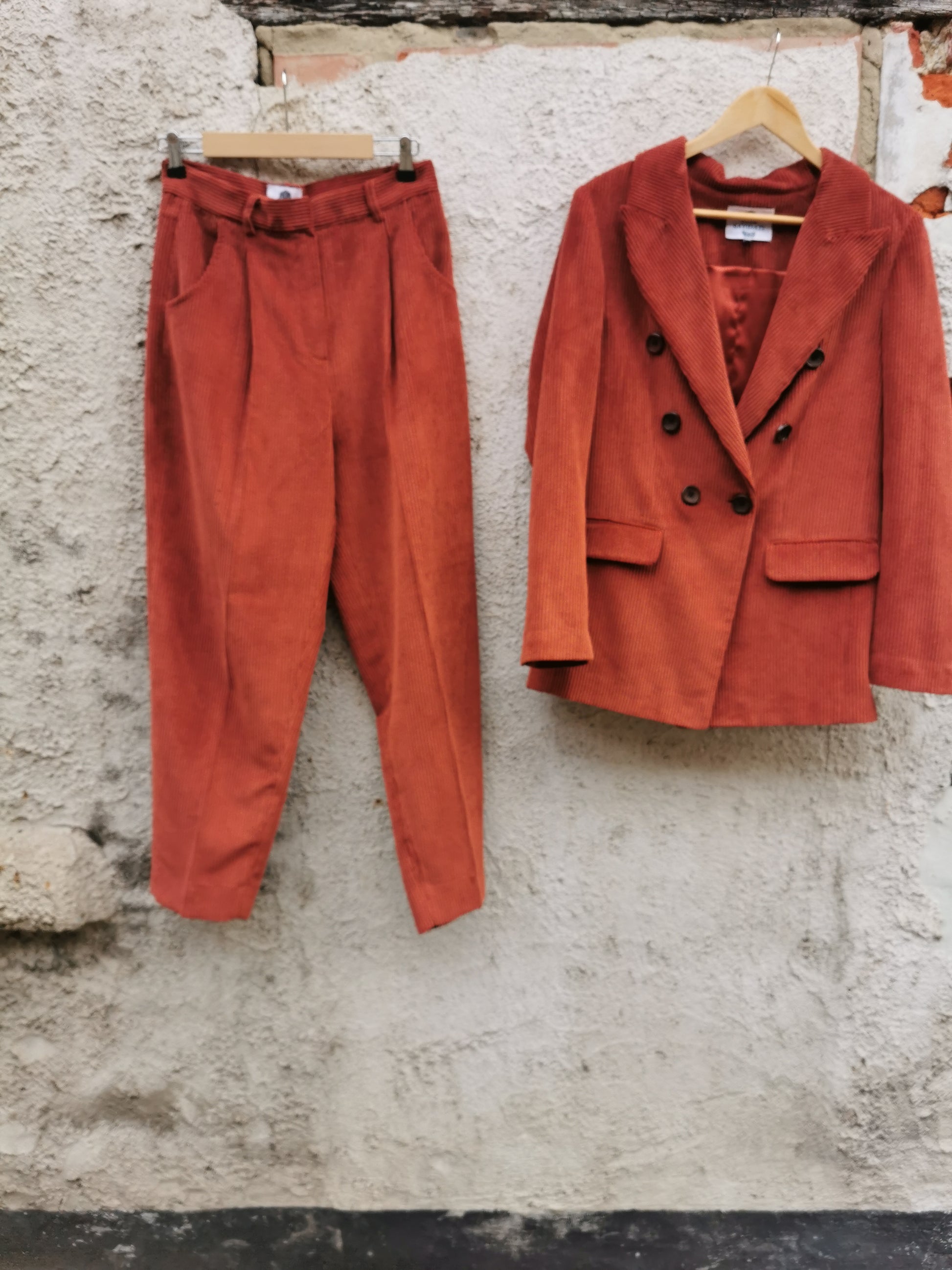 Kostuum in rib fluweel. Oversized fit. Superzacht! Custom made.