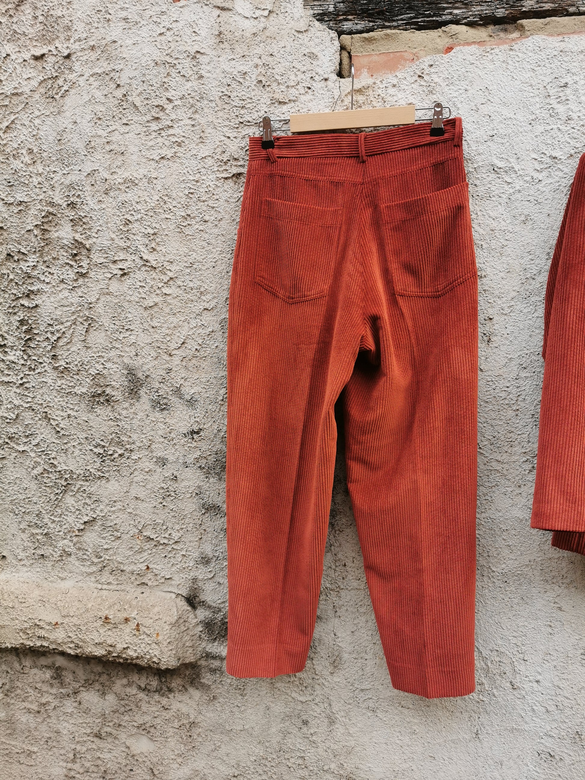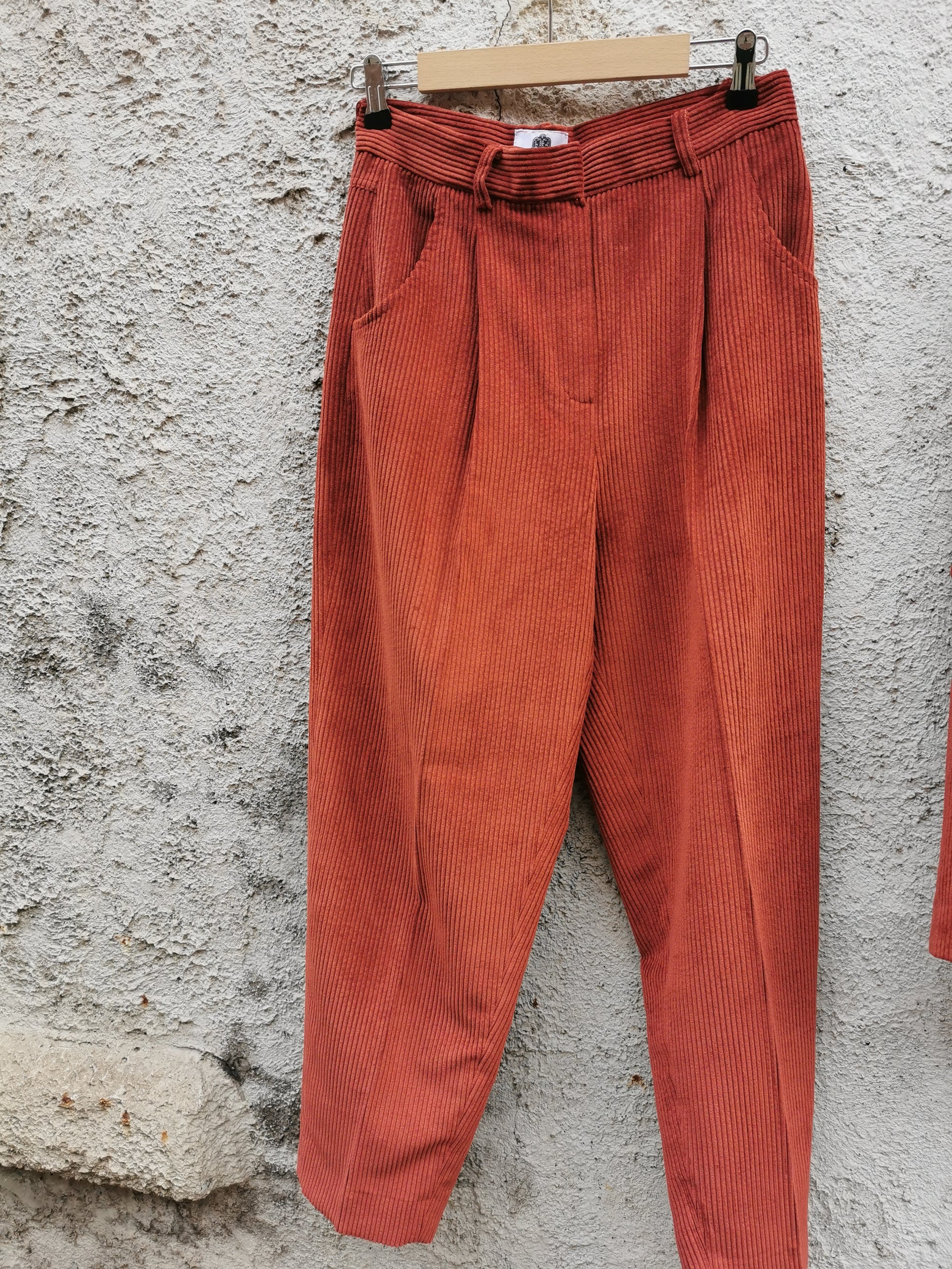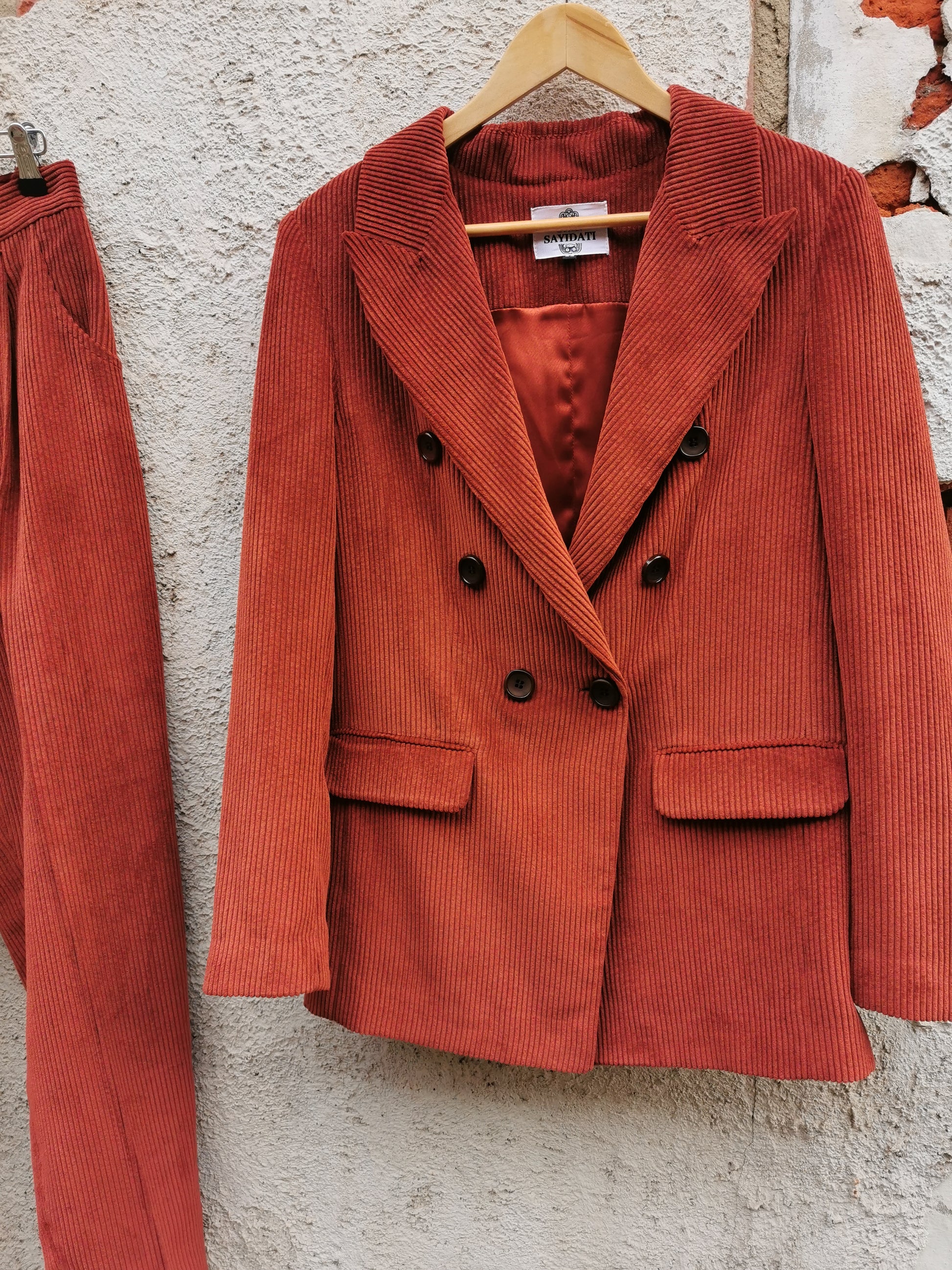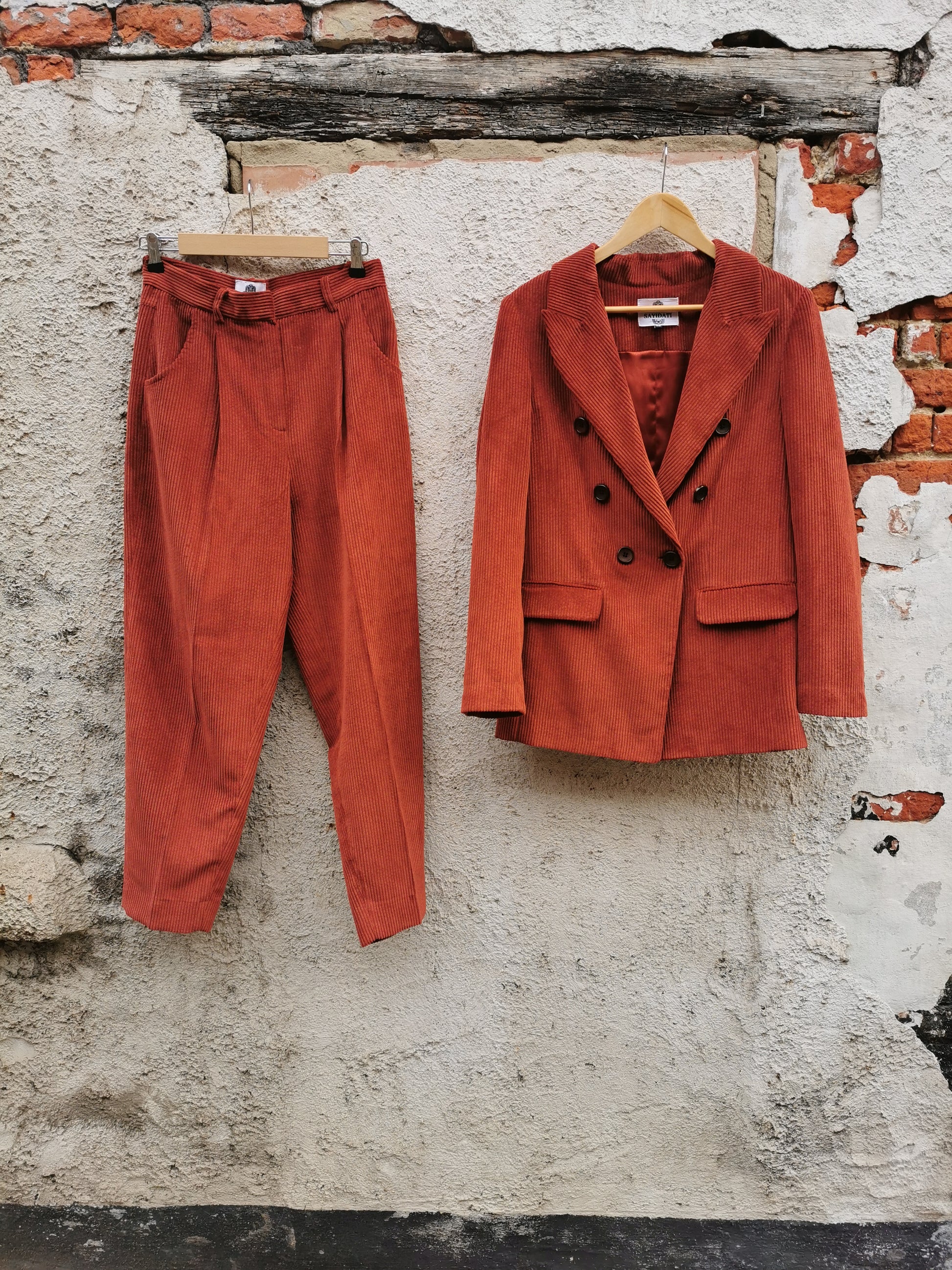 Kostuum in rib fluweel. Oversized fit. Superzacht! Custom made.